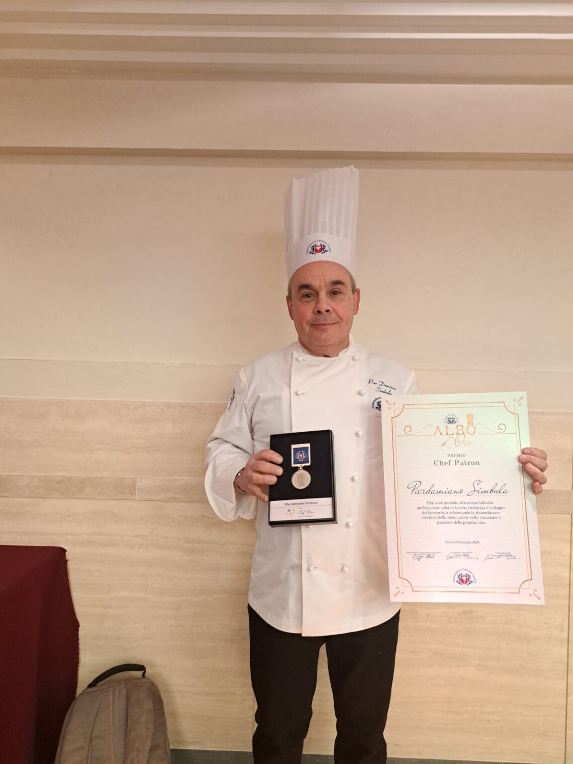 Pier Damiano Simbula è stato inserito nell’Albo d’oro dei cuochi della Fic, la Federazione Italiana Cuochi, con il titolo di Chef Patron. Il riconoscimento gli è stato consegnato a Roma lunedì 13 gennaio “per aver prodotto attraverso l’attività professionale valori e lavoro, ricchezza e sviluppo del territorio, trasformando lo straordinario mestiere della ristorazione nella vocazione e passione della propria vita”.